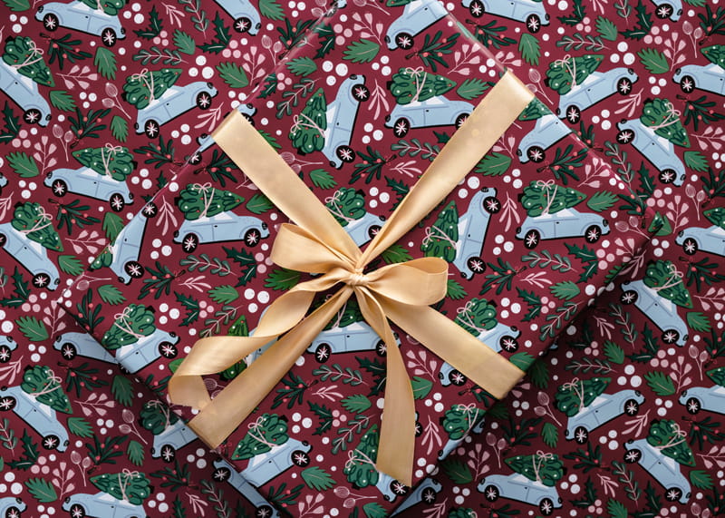Papier do pakowania - Świąteczne autko, 70x200 cm