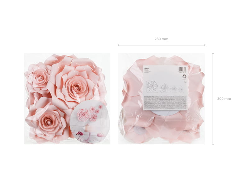 Papierowe kwiaty w odcieniach różu, 5 sztuk, średnica ok. 30, 20, 15, 10 i 10 cm