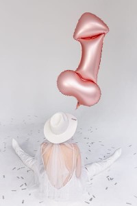 Balon foliowy Penis w kolorze różowego złota, wymiary przed napompowaniem ok. 55.5 x 112 cm (22 x 44”), wymiary po napompowaniu ok. 46 x 88 cm (18 x 35”). Do napompowania powietrzem i helem. Zestaw zawiera słomkę.