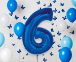 Balon foliowy cyfra w kolorze granatowym, dostępny w wariantach od 0 do 9. Po napompowaniu ma 92 cm. Można napełnić helem lub powietrzem –aby balon się unosił należy napompować go helem.