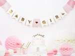Baner Baby Girl, mix kolorów ze złotym napisem, do samodzielnego złożenia, zestaw zawiera literki i ok. 2,5 m białej tasiemki, wymiary po złożeniu: wysokość ok. 15 cm, długość ok. 175 cm.