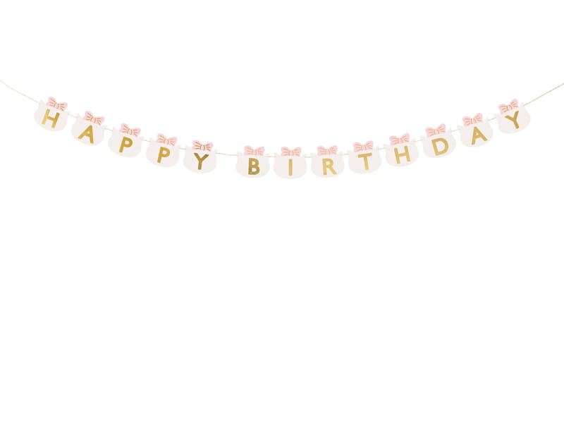 Baner Happy Birthday – obowiązkowy element dekoracji urodzin. Każda flagietka ma kształt kotka w kokardce. W połączeniu z innymi produktami PartyDeco baner pozwoli przygotować urocze tematyczne urodziny dla dziewczynki.nBaner Happy Birthday Kotki, mix kolorów, do samodzielnego złożenia, zestaw zawiera flagietki i sznurek. Wymiary po złożeniu: wysokość ok. 12 cm, długość ok. 2,8 m.