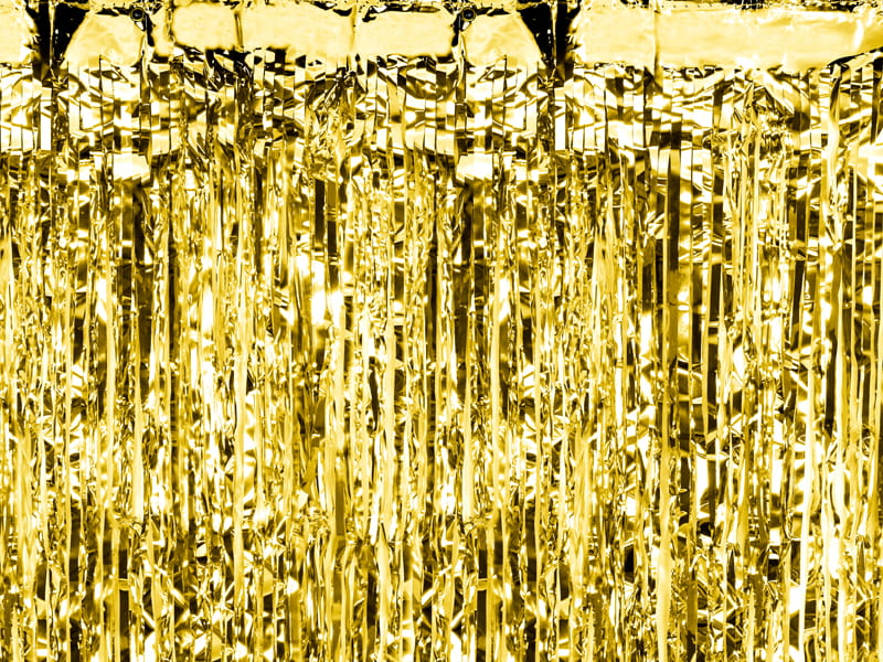 Kurtyna Party w kolorze złotym, szerokość około 90 centymetrów, wysokość około 250 centymetrów.