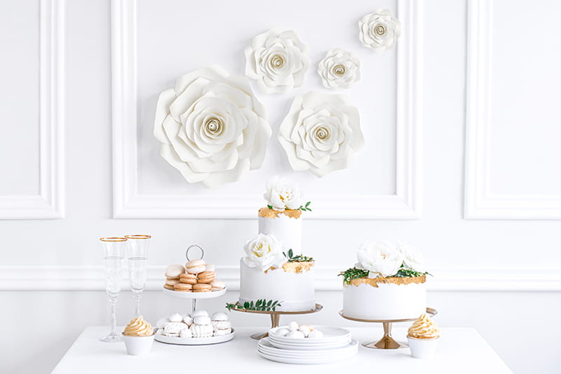 Papierowe kwiaty w kolorze jasnokremowym, 5 sztuk, średnica ok. 30, 20, 15, 10 i 10 cm