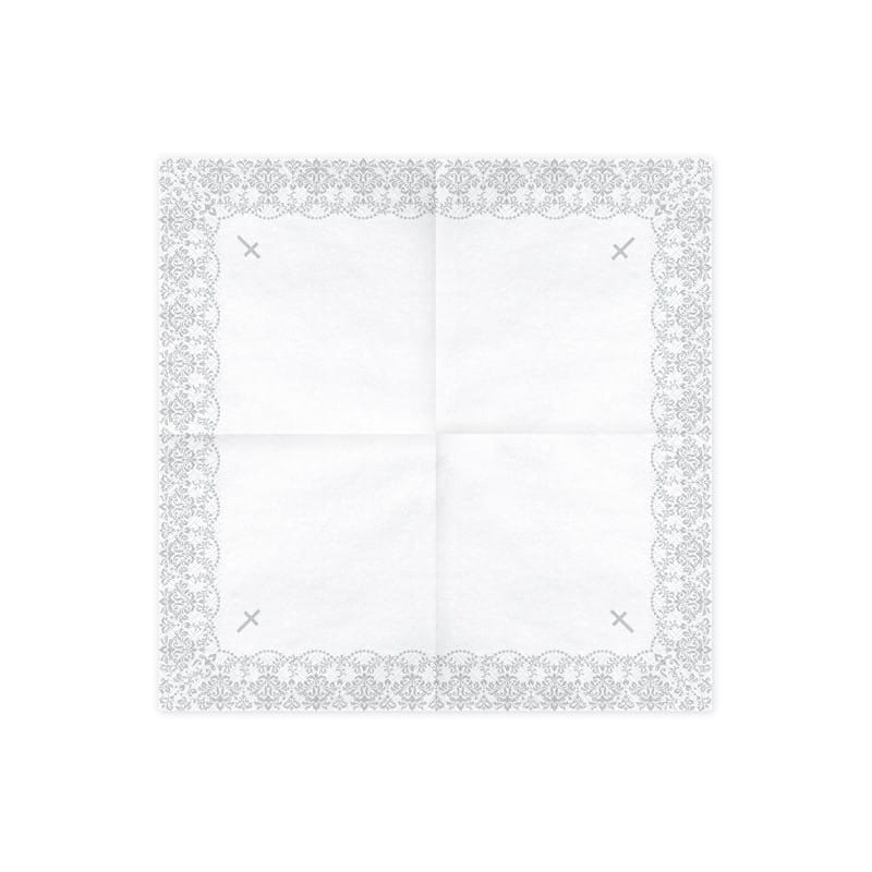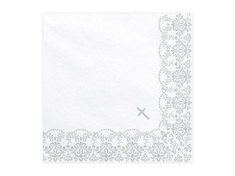 Serwetki Komunijne z ornamentem, 33x33cm, srebrny