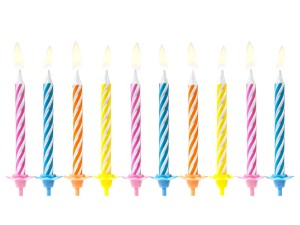 Świeczki urodzinowe, mix kolorów, rozmiar ok. 6 cm, w zestawie 10 świeczek i 10 podstawek.